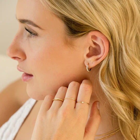 Dainty yet dazzling, the Bella Huggie Hoops are the perfect everyday accessory. Crafted in 14K gold vermeil or sterling silver, these lightweight 12mm hoops with CZ stones are designed for all-day comfort.