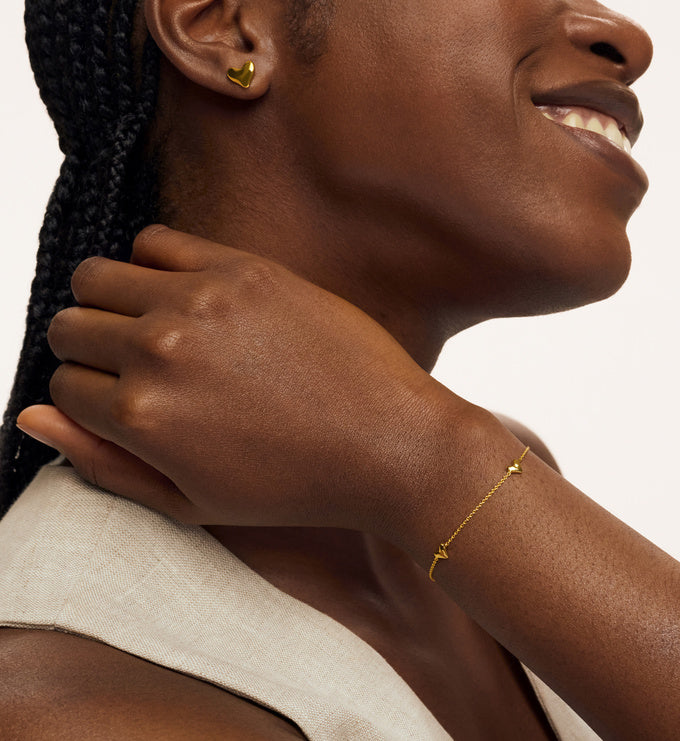 Tiny hearts, giant impact. The Trio Hearts Bracelet features three delicately placed heart-shaped charms, each inspired by nature’s heart-shaped pebbles and set in 18K gold vermeil.
